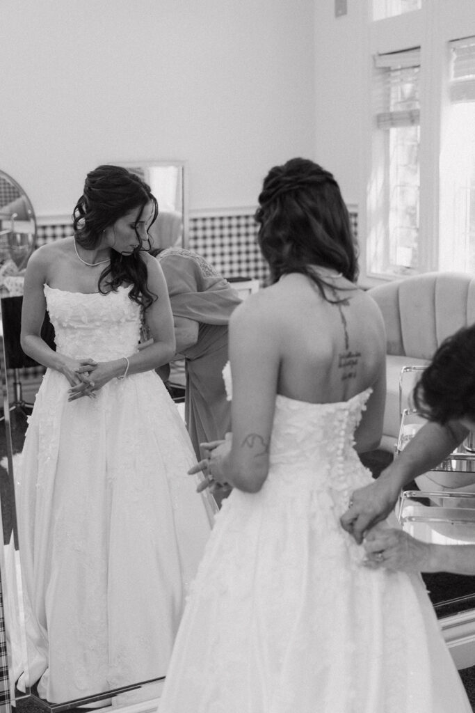 Perched in the rolling hills of Fresno County, The Clovis Castle feels like stepping into another world. The stone architecture, arched entryways, and surrounding gardens gave the perfect mix of grandeur and intimacy. As Sarah slipped into her gown, the soft light spilling through the castle windows created a painterly calm before the celebration began.