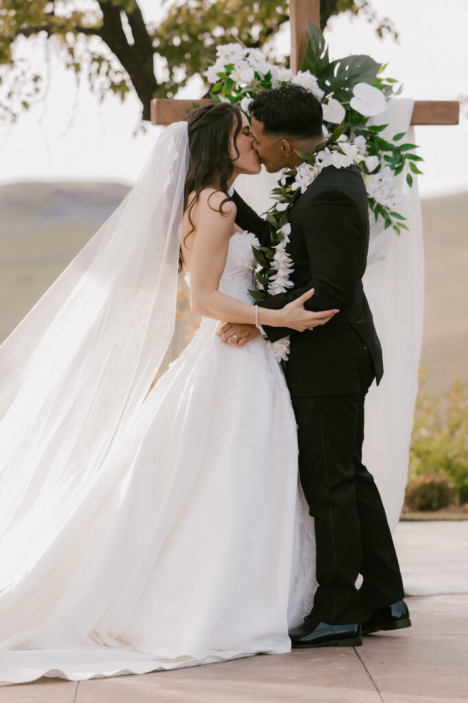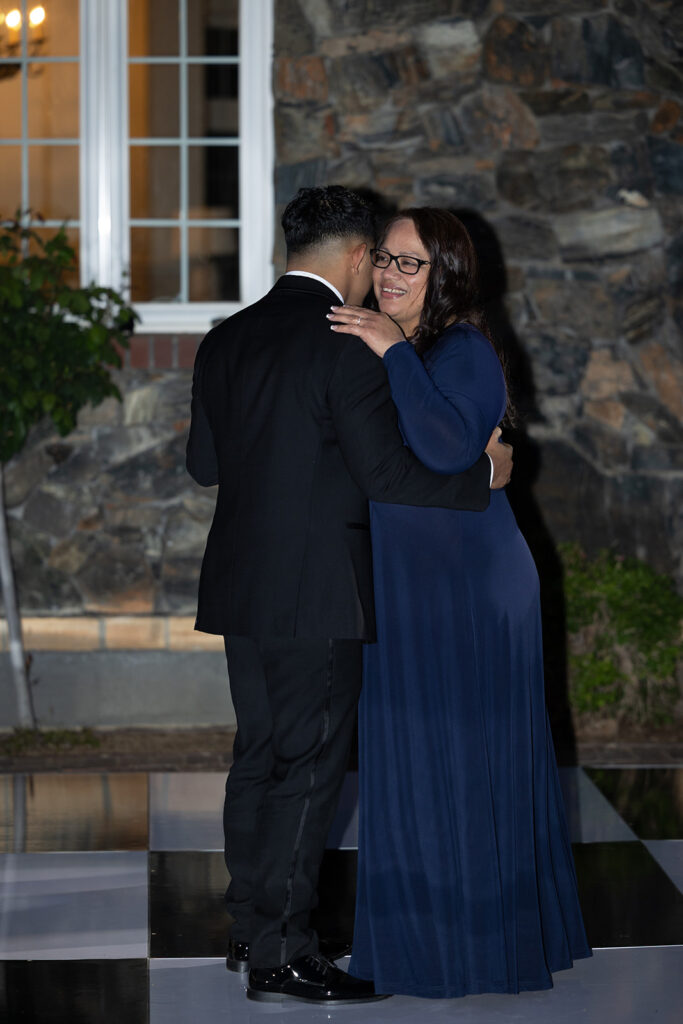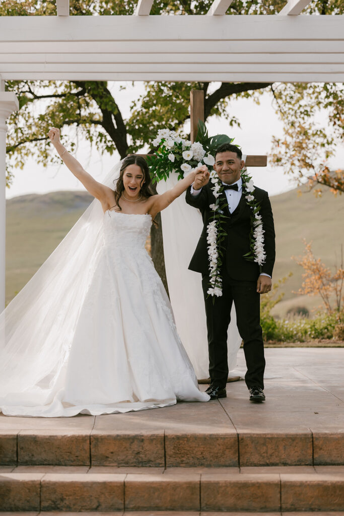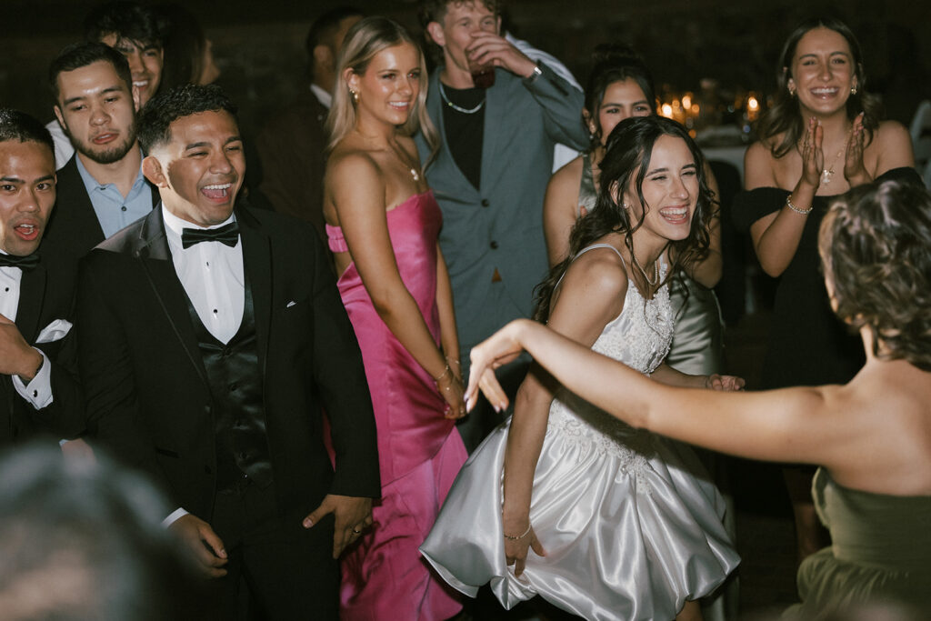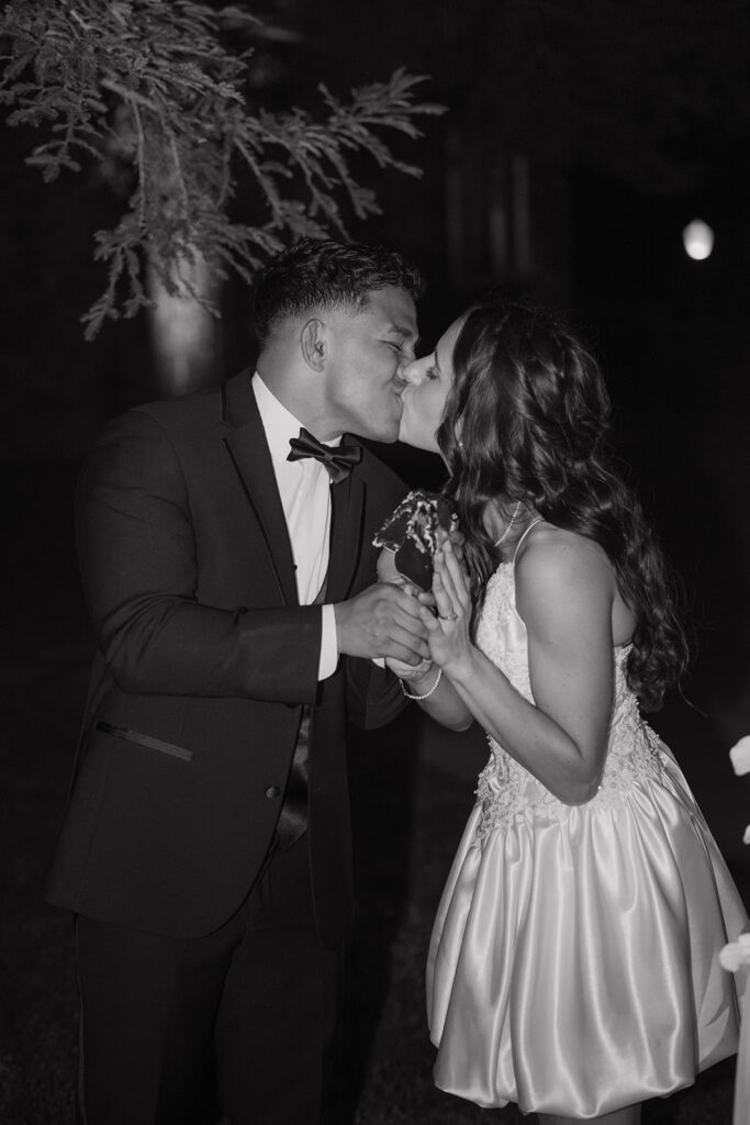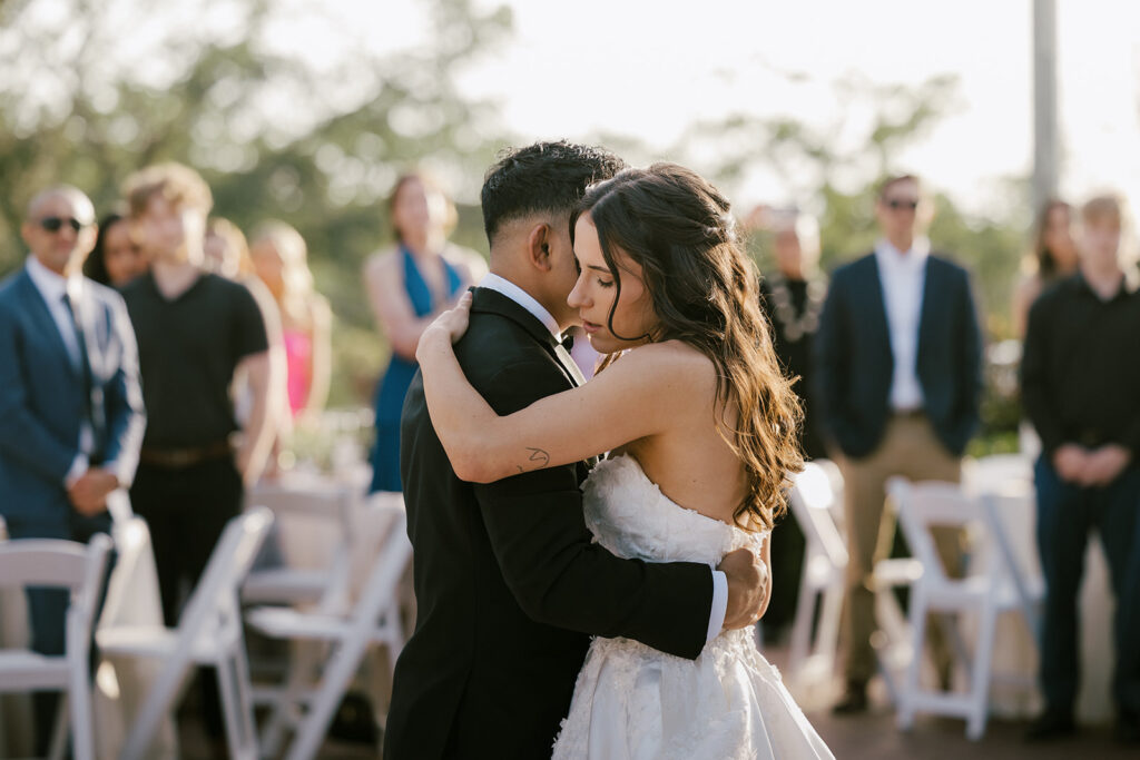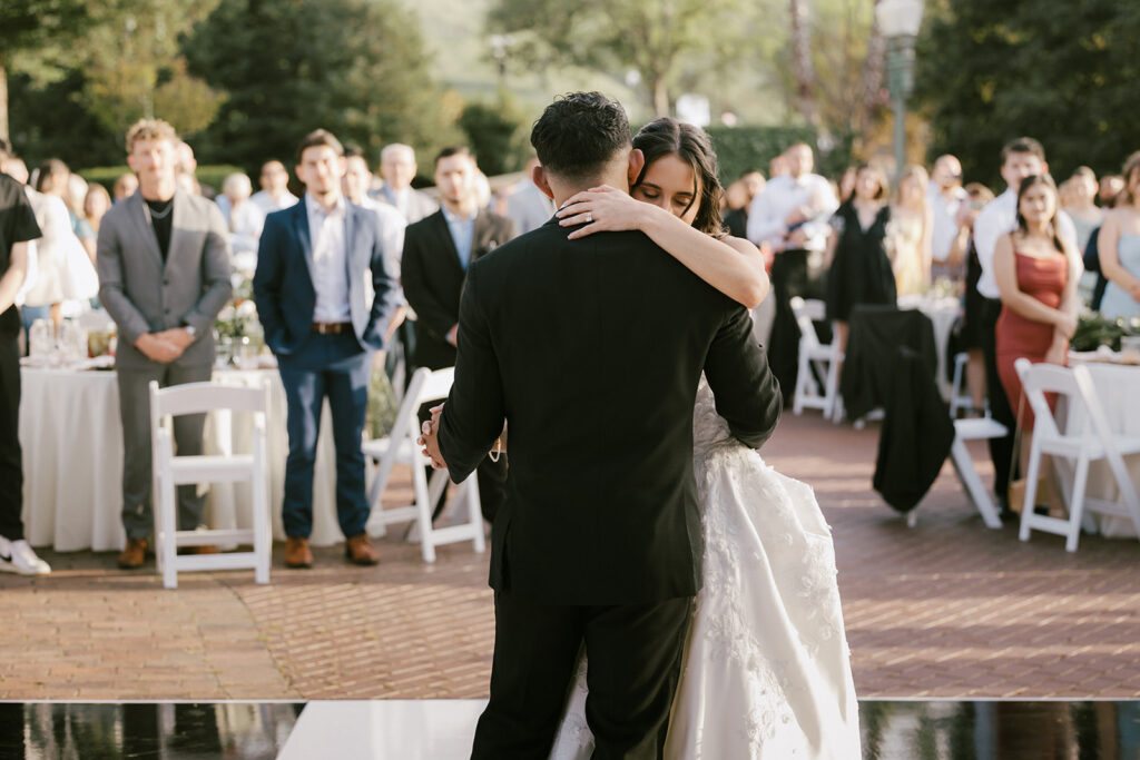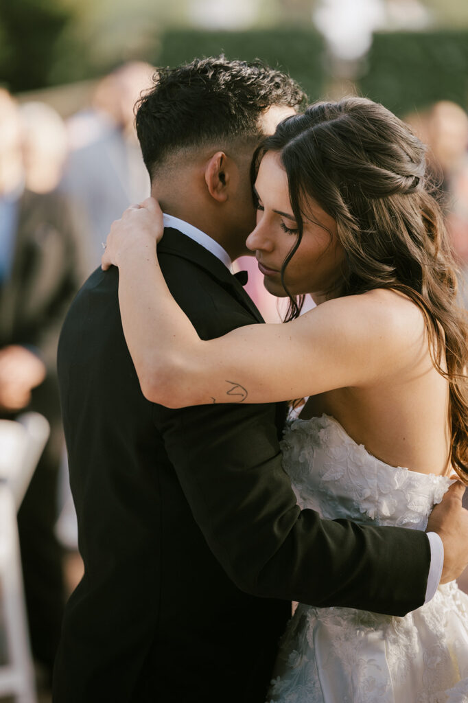 Afterward, the courtyard came alive under twinkling market lights and a deep Fresno night sky. The couple shared their first dance surrounded by loved ones, laughter echoing off the stone. The energy shifted from heartfelt to joyful — a perfect balance of sacred and celebratory.