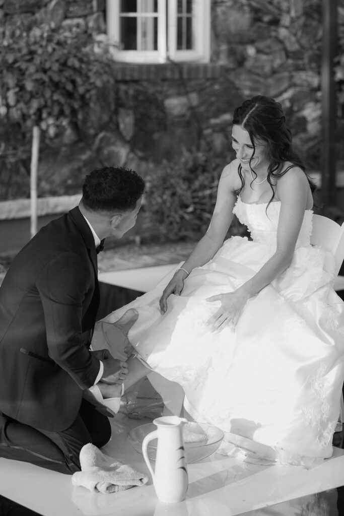As the sun set and the celebration transitioned into the evening, Sarah and Donovin began their reception with a deeply meaningful act — a foot-washing ceremony. In front of their family and friends, they knelt before one another and washed each other’s feet, symbolizing humility, service, and the foundation of love they were building their marriage upon.
